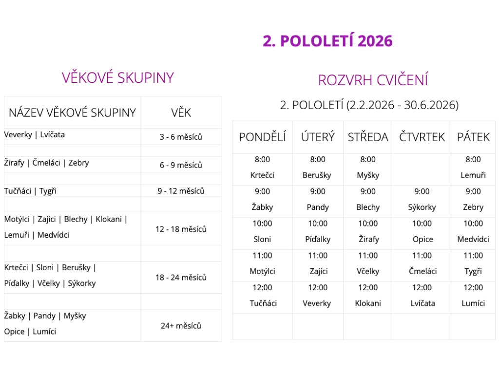 SKUPINU VYBÍREJTE DLE VĚKU dítěte V DEN ZAHÁJENÍ pololetí (2.2.2026)