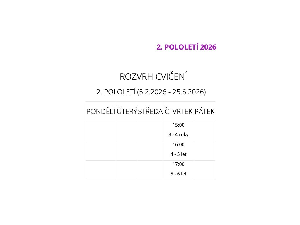 SKUPINU VYBÍREJTE DLE VĚKU dítěte V DEN ZAHÁJENÍ cvičení (5.2.2025)